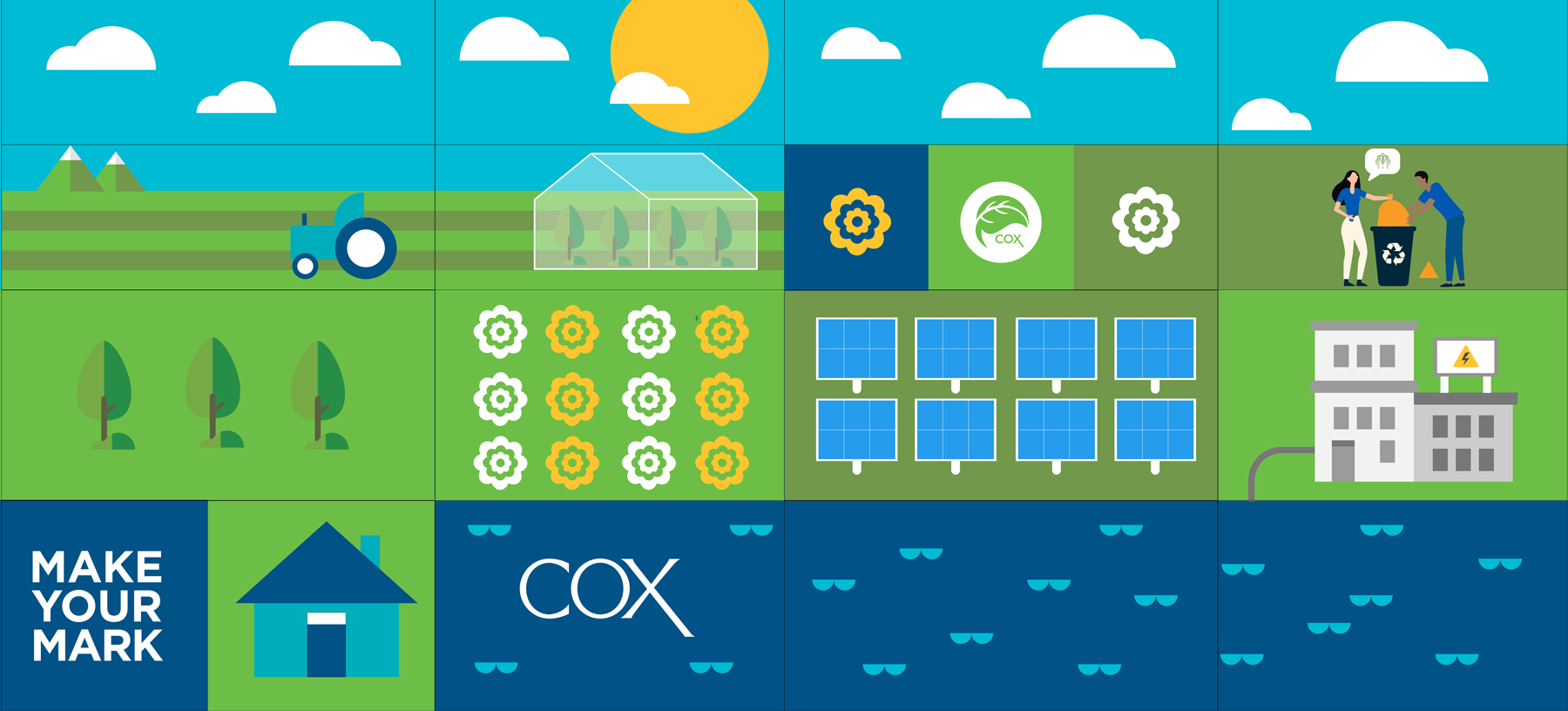 Our team was approached to refresh the beehives design. Our Cox beehives are smartly positioned near a walkway across campus for the general public to be able to enjoy. We used the 4 beehives as an opportunity to highlight our business pillars: Connectivity, Mobility, Sustainability, as well as the unique Culture created by our people on a day-to-day basis.