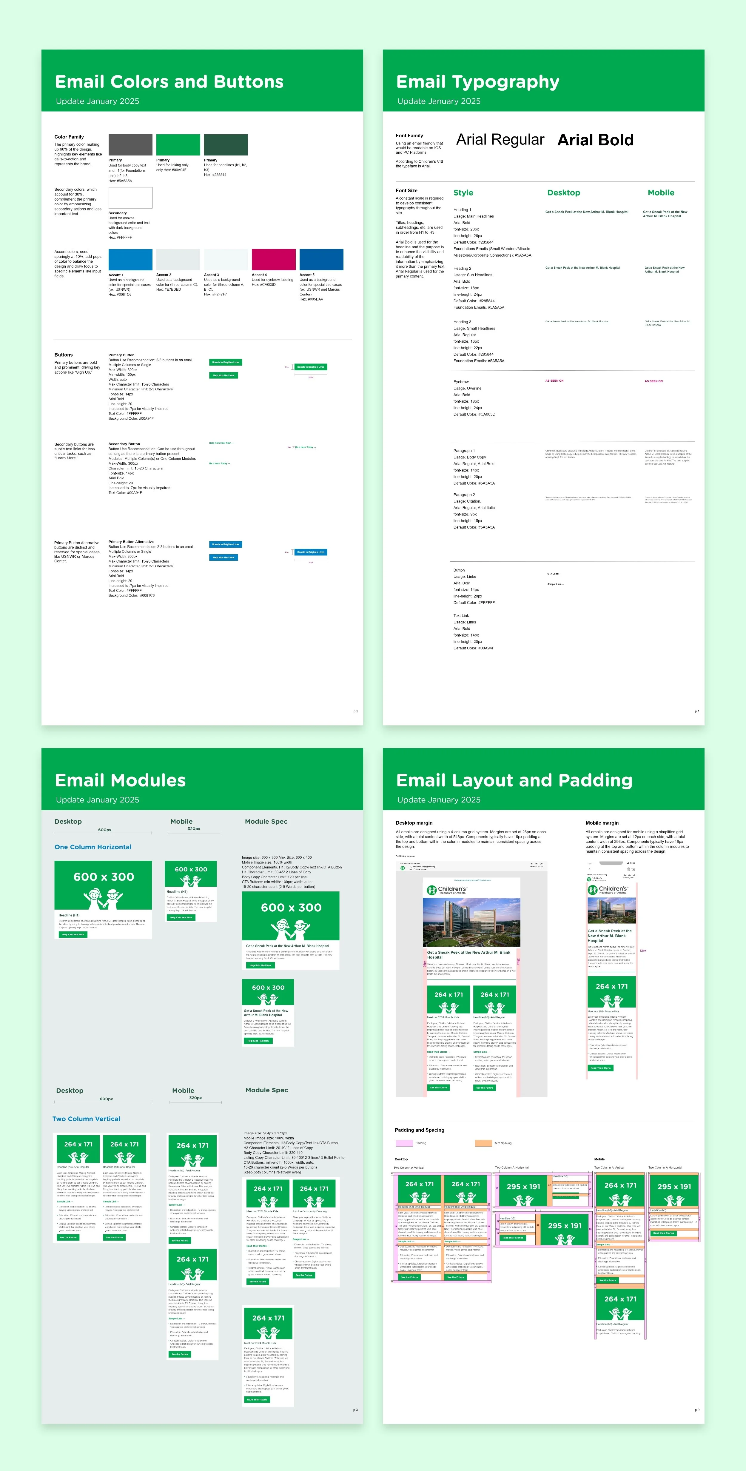When emails are a lifeline for communication, inconsistency can quietly erode trust. At Children’s, every message—from donor outreach to patient updates—needed to reflect the same care and clarity that define the brand. But behind the scenes, email production had become a slow, fragmented process bogged down by inefficiencies and visual inconsistencies. My challenge was to design a unified, modular email system that empowered teams to move faster while strengthening brand cohesion across every audience touchpoint.